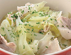 - キャベツから出る水分も利用しながら、少ない水分で蒸し煮にします。