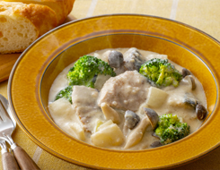 - (B)と1を加えて2分煮、豆乳を加えてさらに1〜2分煮ます。ブロッコリーを加えて火を止めます。