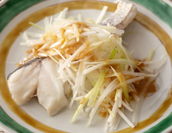 たらのねぎしょうが蒸し 山椒みそダレ